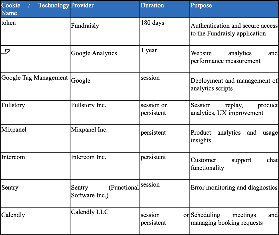 For any privacy-related inquiries, you may contact Fundraisly’s legal and compliance team at: legal@fundraisly.com